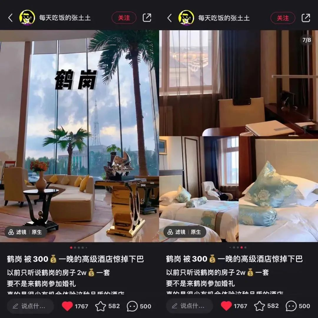八月份,小红书博主“每天吃饭的张土土”发布了一篇了自己在鹤岗高级酒店的居住经历。