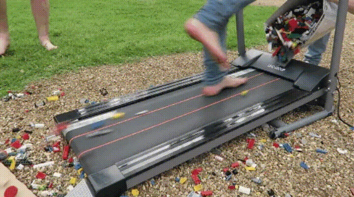 不过人类的自负在挑战生理极限上面是永无止境的,有4名英国男子曾经在拥有超110万用户的“My Challenge”Youtube频道上无畏地进行了一项超级折磨的挑战:赤脚在洒满乐高的跑步机上狂奔!