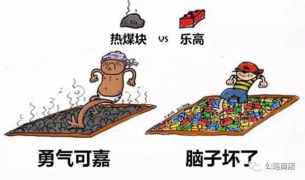 如果说赤脚走煤块的民间技艺实属勇气可嘉,那么挑战一地散落的乐高简直就是脑子进水。