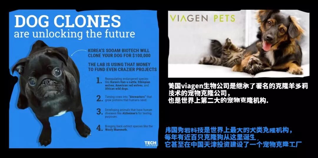 世界最大的两家宠物克隆机构:韩国的秀岩科技与美国的VIAGEN生物,十几年来他们已经生产了上千只以克隆狗为主的克隆宠物