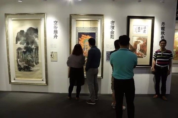 预展现场中的《丹霞秋色》与《密积金刚》