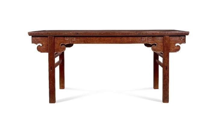 画案在文人的生活中有着非常重要的位置,一般认为案深逾60厘米者可曰「画案」,未逾者则为条案或书案。此案进深84厘米,为大型画案。其硬朗的线条、巧妙的雕饰、豪爽的用料,使之成为明式家具的上乘之作。画案的特色在于用材粗硕,形态古朴,结构严谨,线条明快,浑厚凝练,是大型家具中很有代表性的一件。