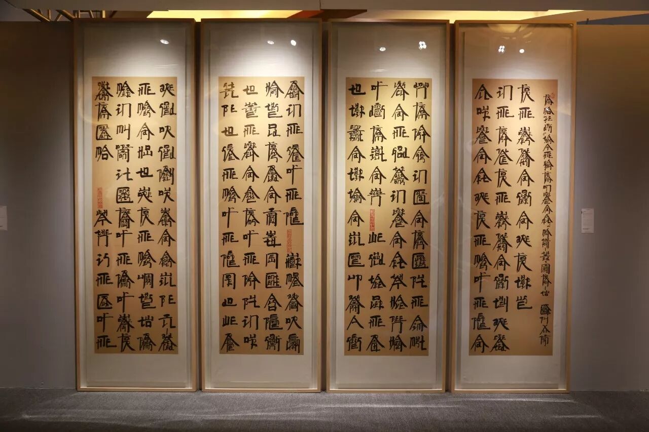 徐冰 《毛主席语录——在延安文艺座谈会上的讲话(四联作)》纸本水墨 227.5×70cm×4 2001年