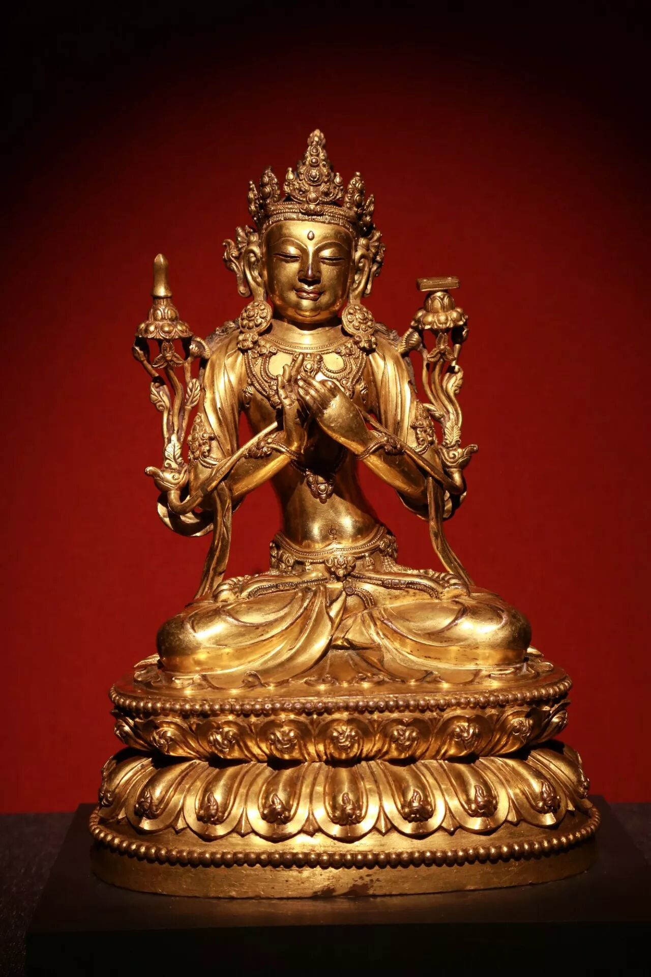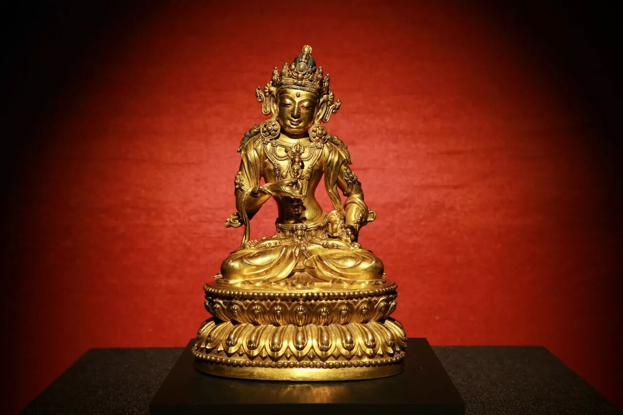 ▌“佛教艺术精粹”专场和“万法归一”宫廷专场荟萃了蒙古、汉藏、东北印度、尼泊尔、明清宫廷各个时期的近百件精品。唯一流散民间的乾隆御制大威德金刚三连尊将惊艳亮相。此件由乾隆皇帝亲自督造,清宫档案明确记载曾供奉于紫禁城养性殿。与两件故宫博物院藏品一母同胞,为流通于市的唯一之作,堪称举“市”无双!