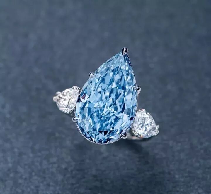 8.26克拉浓彩评级(FancyIntenseBlue)蓝色钻石配钻石戒指