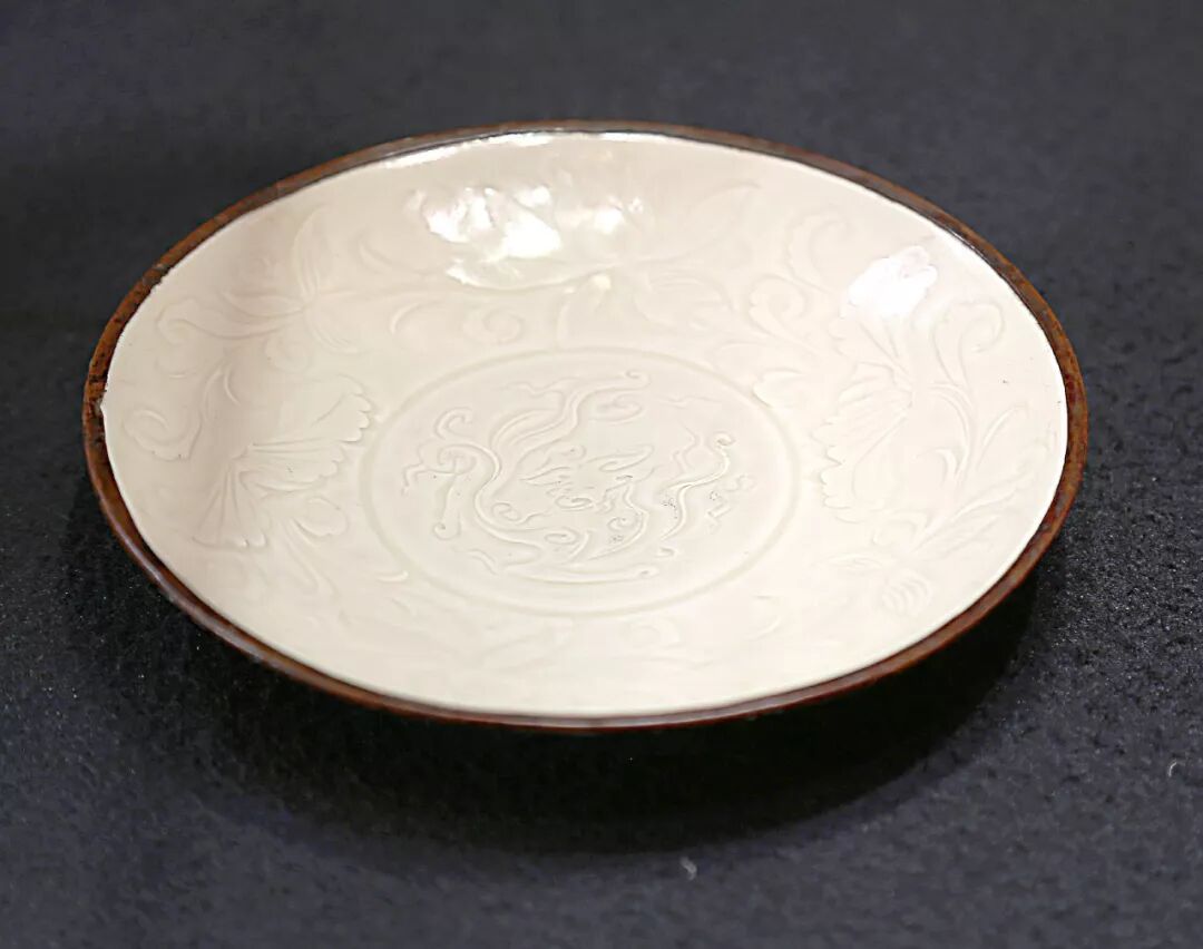 北宋 定窑白釉刻双龙莲花莲瓣盘