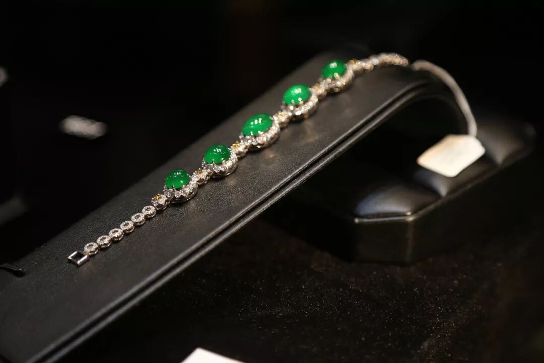 天然翡翠配钻石手链