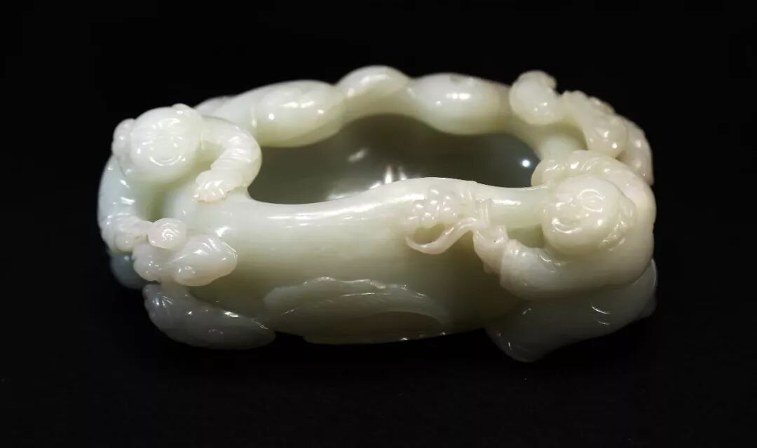 清乾隆白玉童子万年如意笔洗