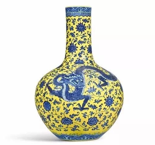 仇国仕介绍清乾隆黄地青花穿花龙纹天球瓶