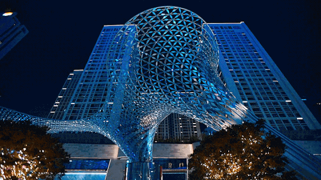后期引入拙政园的障景手法,在外围加上一道镂空式艺术之巢,集合深圳中心上百家国际大师团队的英文字母简写。