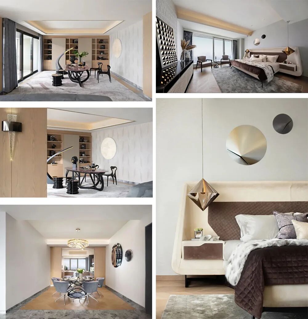 偏厅手工浇铸的铂晶茶座、宴会厅由整块钢铁捶打而成的独特餐桌底座,卧室独具时代特色的空间配饰,俨然一件件个性鲜明的艺术作品。