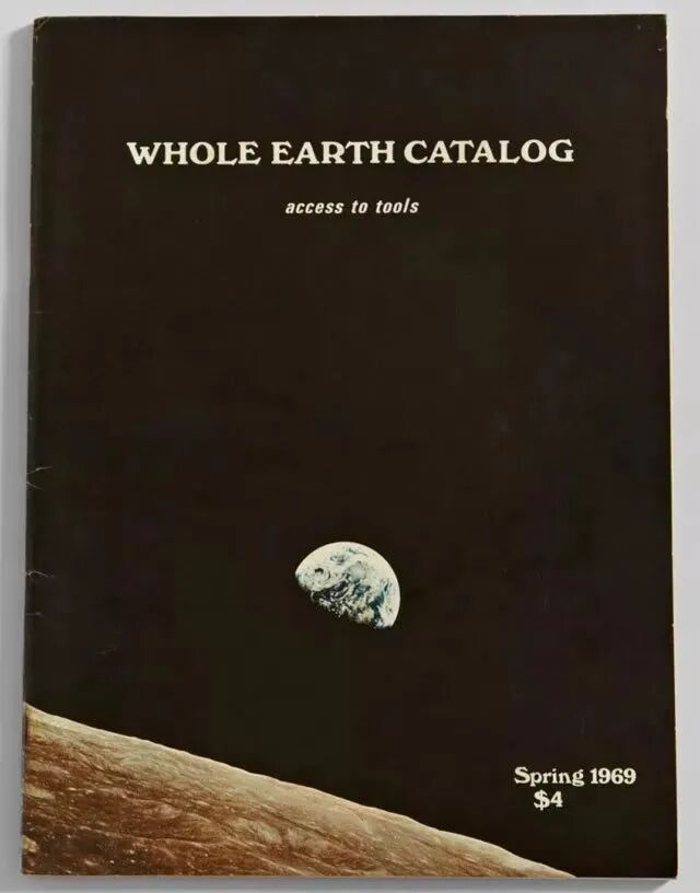 《全球型录》创刊号的封面是布兰德渴望已久的一张照片:NASA从太空拍摄的地球照片,而在刊名下面有一行字:access to tools/工具的管道。这张照片和照句话看似无关,但构成了《全球型录》的主要精神。