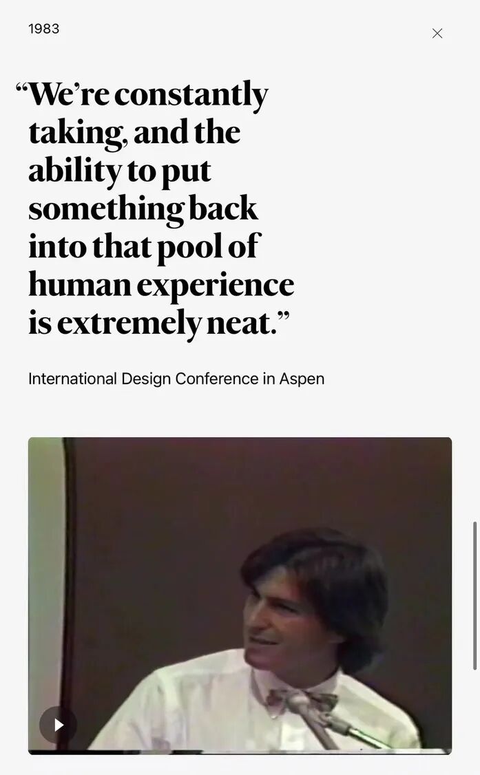 这是乔布斯遗孀Laurene Powell Jobs支持的项目,苹果CEO库克、前苹果首席设计师伊夫共同倡议建立的网站,收录乔布斯的一些核心理念和相关媒体资料。