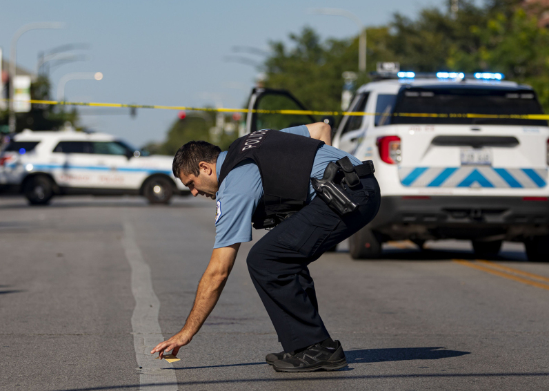 美国芝加哥警察在枪击案现场进行调查。