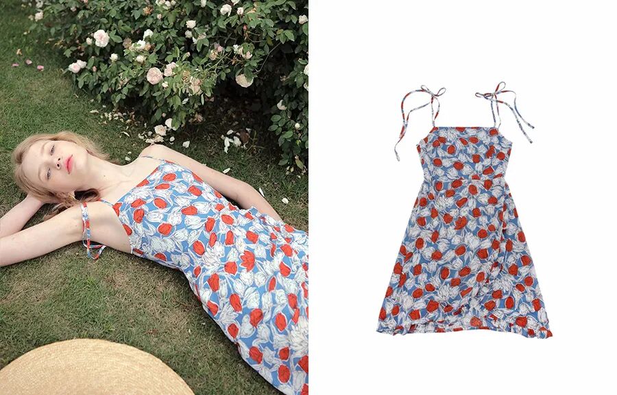 如果你是上半身纤瘦的妹子,选吊带+开叉裙的款式,配白球鞋(老爹鞋就是好选择),也是夏日里的活力少女了。