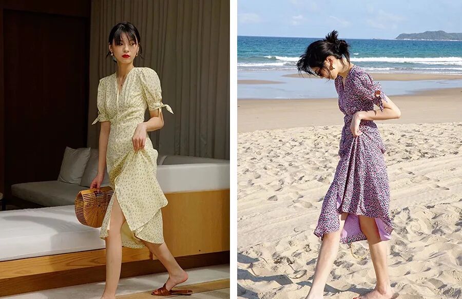 2️⃣充满法式浪漫风的碎花茶歇裙/吊带裙依然火热,开叉设计挺显腿细,建议选小碎花,更减龄。3️⃣大袖摆+高腰+A字裙设计的桔梗裙也热门着呢,而且尤其不挑身材,特别适合梨形妹子们,今夏依然可以备一件。
