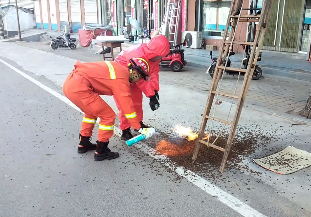 近日,在高新区一门头房广告牌下惊现一个马蜂窝,严重影响周围居民生活,店主立即报警求助。消防救援人员到达现场后首先疏散附近居民,对现场警戒,以防处置过程中马蜂飞出伤人。在仔细勘察现场,确认能安全清除马蜂窝的前提下,消防救援人员穿着封闭的防蜂服,爬上梯子小心翼翼地靠近马蜂窝,采用“杀虫剂”将其摘除。