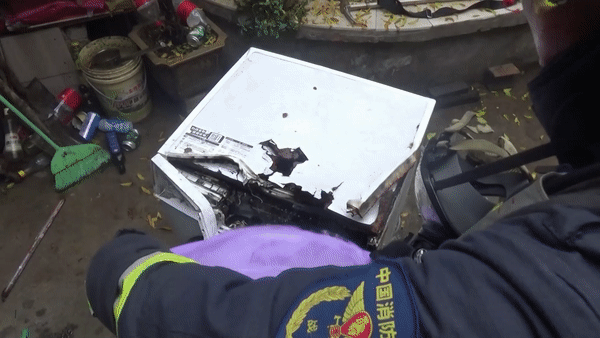 随即发现洗衣机着火了!