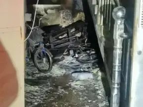 2022年10月26日,浙江温州龙港市某8层楼房内,放置在一楼楼道的电动自行车起火,火势迅速蔓延,现场浓烟滚滚。![]()