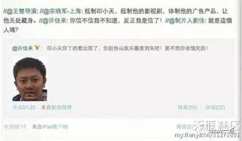 其实就是在2012年的时候,一个叫知心钰的网友在微博说,有个男演员打女演员,然后@了印小天▼▼▼