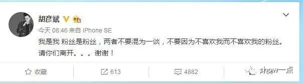 双方粉丝撕得太猛,胡彦斌出来护犊子了。