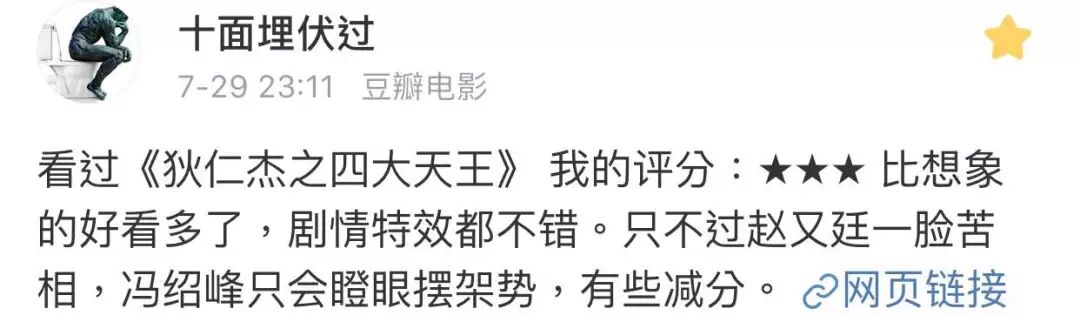 我为什么特别忍不了冯绍峰这次的演绎呢,是因为看得出徐克想在这个角色身上追求一种什么样的效果——大开大合,他必须是跟周围人物格格不入的,是自带次元壁的;但是,他又是融合在这部电影的怪冶氛围内的。