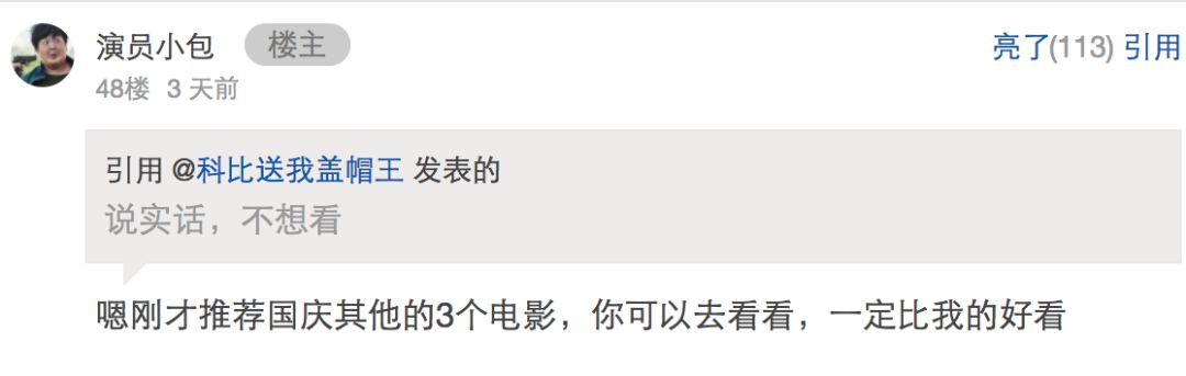《胖子行动队》在上映前就收获了不少一星,这被包贝尔纳入了卖惨素材。我是不认同这种打分方式,但由他本人说出这种话还是太没有自知之明了点——