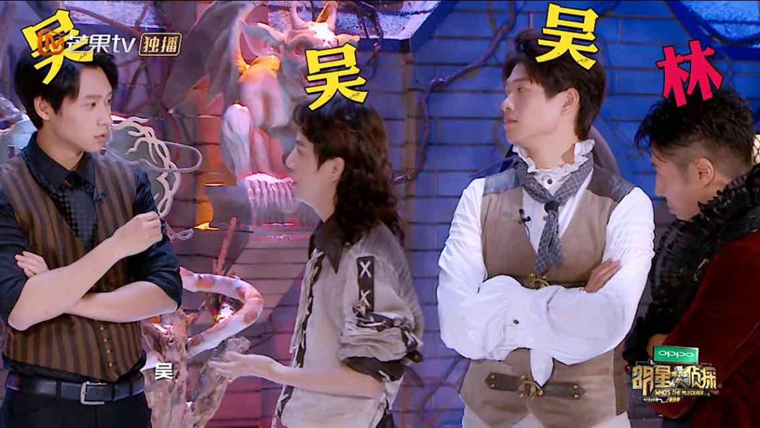 5个嫌疑人中,林更新、撒贝宁和吴昕是学校里的魔法老师,魏大勋是学校的厨师,何炅是学校的车夫▼▼▼
