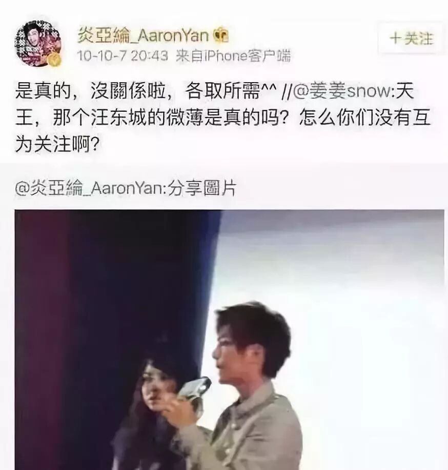炎亚纶初开微博时反复关注、取关,吸引汪东城的注意,然鹅汪东城就是没有回粉▼▼▼