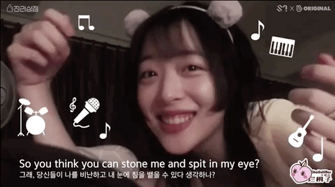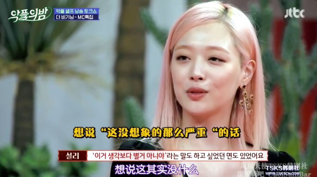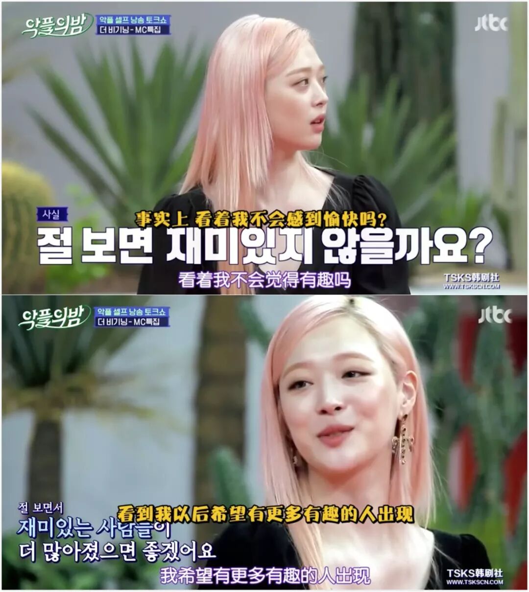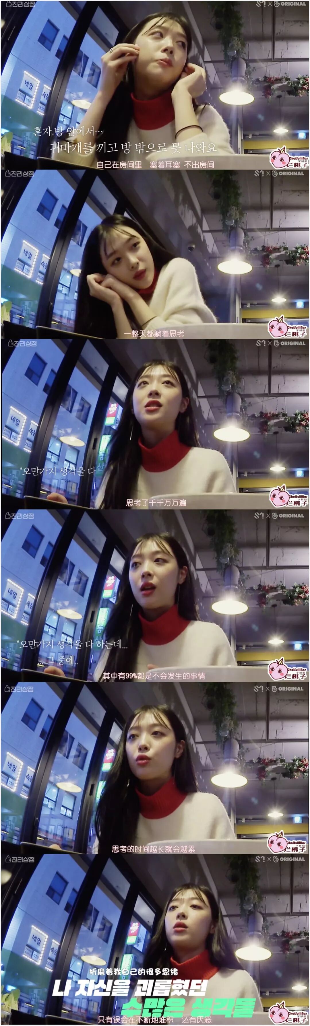 2018年年末她开始了自己的首档真人秀《真理商社》,算是正式意义上的回归娱乐圈。她的努力正是学会示弱,把那个堵住的自己再次敞开,愿意对朋友说一句“我累了”。关于这三个字的艰难,如果有看我们推荐过的《浪漫的体质》应该明白▼▼▼因为想拍出雪莉最自然真实的想法,《真理商社》没有编剧,是档逻辑挺乱的节目。她在柏林的游玩和在韩国的私生活不断穿插进主线,导致我看了三期才看懂主线也就是商社到底什么意思:以崔雪莉的名义和不同品牌进行合作,出带有她个人特色的特别款产品,开快闪店售卖。这个节目框架对于她的挑战就是踏出家门,和不同的人见面,而通过那些陌生人的眼睛还原一个崔真理。她永远笑眯眯的,几乎每句话都带点哈哈哈的尾音,同僚一开始以为她是做戏,后来发现这人就是这么和和气气▼▼▼逛柏林并不便宜的小店,把所有女性工作人员叫进去让她们选耳环,“我请客”▼▼▼直男以为她是被捏造出的毫无性格的爱豆,“见面之后才知道她只是一个美丽的地球人”▼▼▼节目公开了她放自己画作的IG账户、画满随笔画的本子,是少女小心翼翼的想象力▼▼▼《真理商社》绝对不算好看的综艺节目,正如崔雪莉的二哥所说,她是个无趣的人。即使挖到反差这么大的取向,也因为她太“理所应当”所以“没什么好深挖下去了”。一开始的柏林,她聊完上一次崩溃就乐观展望“好像会遇到一个握住我的手的人”▼▼▼我根据时间推,大概是她发出这次聚会照片引起的事端,在国内也有讨论▼▼▼她略带哽咽地说起大众对她的有色眼镜,你们应该都有看到这张截图▼▼▼但事实上,她只难过了几句,便再次乐观起来——《真理商社》播出后已经好了很多了。“好像有了很多站在我这边的人,人们是会改变的吧,是不是会更了解我呢?”▼▼▼《真理商社》留下了崔真理最后一段努力生活的纪录,她对解释有欲望,对未来有盼头,对朋友有依赖,对外界有信任。因此她在末尾才会说:记者朋友们请疼爱我一下吧,观众朋友们请疼爱我一下吧。但等到2019年6月,她发表个人单曲,常驻综艺《恶评之夜》(类似于《瓣嘴》),态度就已经变了。“就,认可我这种人的存在吧。说实话不会觉得看着我很有趣吗?”▼▼▼雪莉在《恶评之夜》上读那些恶评再反击的样子,和她在直播中小声念叨“我不是坏人”之间差距的是一道塑料泡沫搭出来的围墙,她的内里就是个敏感多疑的小女孩,需要鼓励和爱意,远没有那么多的girlpower去挥洒。其他MC问她,在被这么严重攻击的情况下,为什么还要坚持?她说就是想告诉大家“这没想象得那么严重”,话很好听,但绝不是她那个状态下能撑得起的标语。雪莉一度展示过脆弱,这是她自我疗愈的一个环节。粉丝都知道她的迷茫,对她说的话无非是一句“做你想做的事情吧”▼▼▼但时隔一年当她坐在摄影棚里,为了解释自己没有吸毒飒爽地说着“我就在法律范围内自由”时,自由已经变味,脆弱还是被收起来了▼▼▼自昨天她去世后,前任崔子的SNS就被大量攻击,包括微博也有不少骂他的言论。认为是他带坏了这颗人间水蜜桃,雪莉的腐烂就从他的《吃做睡》开始,没有他也没有现在的悲剧,等等等等▼▼▼当年两人在一起后就没对外回应过恋情细节,爱豆和地下rapper,14岁的年龄差,每一条都让人浮想联翩▼▼▼崔子所处的是饶舌团体DynamicDuo,爆出绯闻之后他便几乎不在综艺上出现。另一位成员Gaeko单独上《无限挑战》的时候还被嫌弃:为什么来的不是崔子?▼▼▼