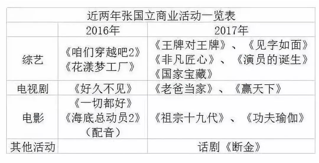 以前他是跟人剑拔弩张的角色,现在他突然成了导师剑拔弩张时负责救场的万金油。郑昊“蚂蚁竞走”那期,被boss团的成员说是戏霸,张国立最后温柔而不失礼貌地圆场,半鞠躬地说:“我也觉得就这么一段戏,就用戏霸安在一个舞台表演的一个演员上也稍微言重了一点。”在于月仙和陈小纭表演完《唐山大地震》片段之后,面对宋丹丹点评演员“用力过猛”,而章子怡反驳“这段戏给很多演员去演,也不见得他们能展示出演技”的尴尬状况。张国立又出来圆场,表示这个片段是电影里剧情的积累,情绪要达到一个爆发的点,演员演得那么悲情不是演员演技的问题,而是剧本选择的问题▼▼▼从这,我们才发现张国立演员角色之外的一个性格侧写▼▼▼因为2013年拿自己的公司和王中军对赌,被牢牢套住了▼▼▼2013年,华谊以2.52亿的价格收购了张国立和合作伙伴所在的浙江常升影视制作有限公司70%的股份,业绩承诺期限为5年,其中2016年的利润不低于3779.50万元。对赌后张国立遇上了影视风口转向,盈利出现缺口,2016年就出了一千多万的缺口。“有了对赌协议后,我就变得不从容了,拍戏不像以前那样等一个我喜欢的剧本、等一个我喜欢的角色。过去活动、广告不好,多少钱都不接。但后来变得这一切都没有门槛了,因为我要做一个讲诚信的人,用什么方式都要把这个钱给人家填上去,面对股民时,让他们知道这个人没签错。”接下各种剧,还得出来拍综艺,做嘉宾做主持……▼▼▼但电影票房不咋地,和姚晨主演的电影《一切都好》票房只有2000多万元,电视收视、口碑也不出众。