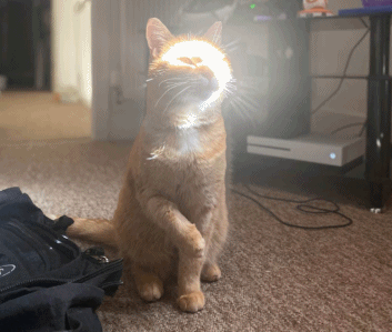 后来,詹姆斯和莫妮卡又收养了一只被遗弃的猫Jynxie,目测也带橘。