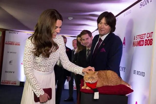 伦敦首映式上,凯特王妃特意跑去和鲍勃“握手”——王妃轻抚鲍勃的头,但傲娇的他,却甩尾回应,明显应酬累了哈哈哈▼▼▼