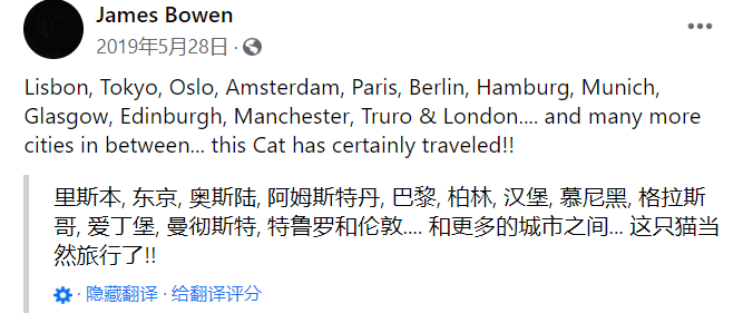 而橘猫Bob在认定了他的铲屎官,不离不弃之后,也结束了流浪生活,每天都有新的粉丝涌进来求关注。