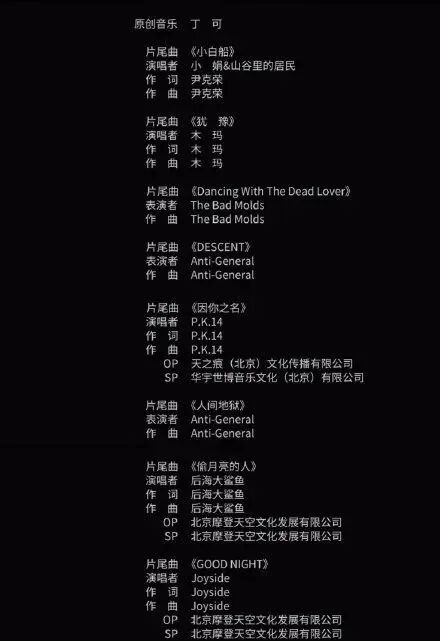 片尾曲还出现后海大鲨鱼、发光曲线、木玛等独立乐队▼▼▼