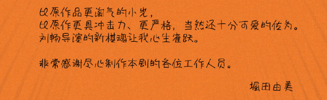 看过真人版正片后,她给制作方发来手写信,赞小胡塑造了一个“比原作品更淘气的小光”▼▼▼