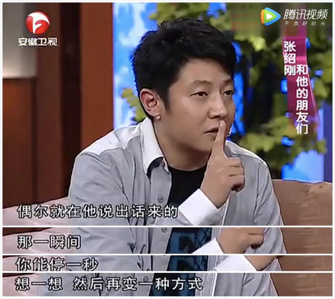 不可否认,张绍刚这样密集地让人想塞耳朵,和节目剪辑、kpi营销有一定关系。但翻一翻他这3年参加的其他观察类节目,你会发现,张老师的发言中时不时夹杂着几句“爹言爹语”。