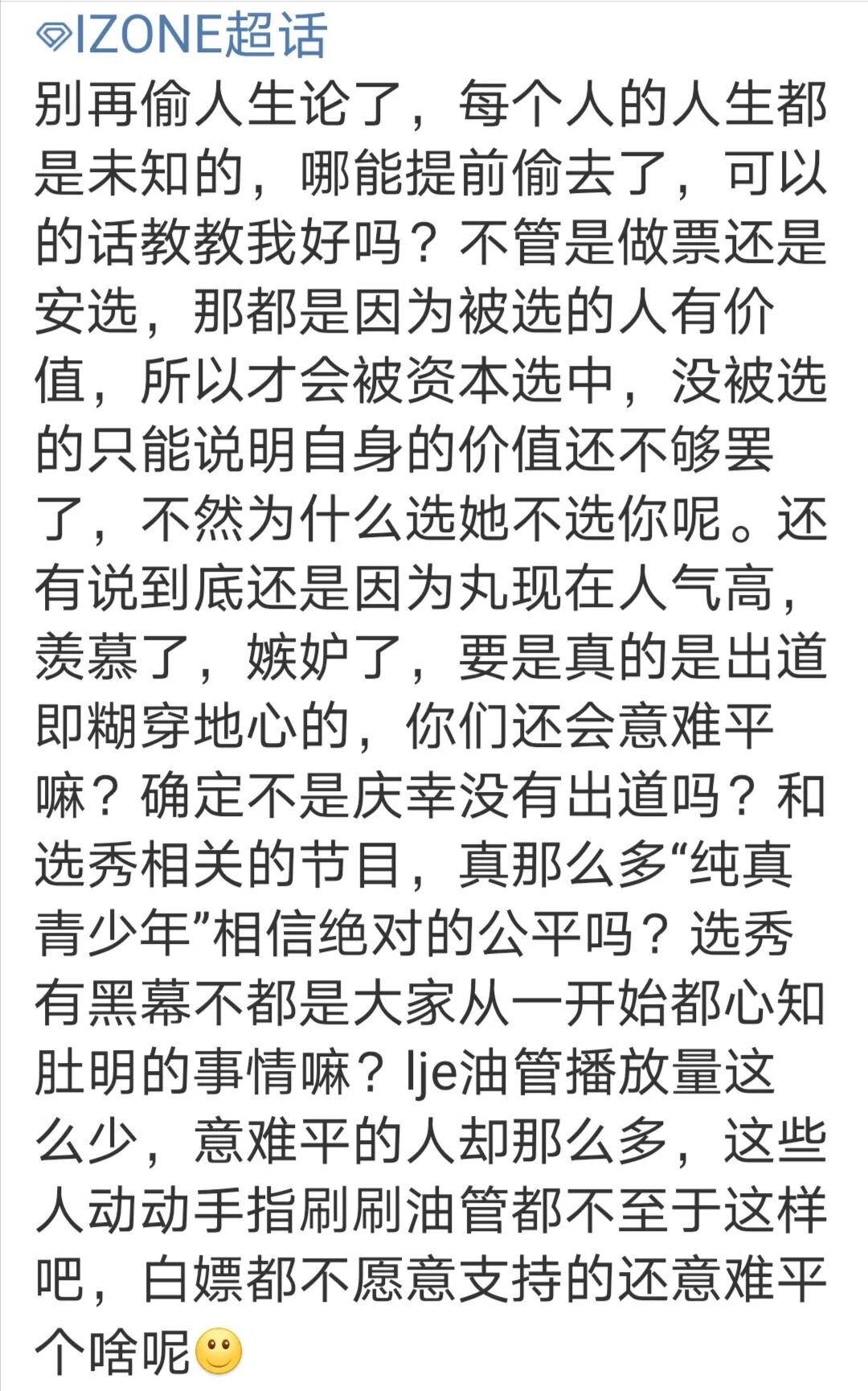 不能因为那些努力训练,放弃一切去参加选秀的孩子,梦想是舞台,赚钱是靠唱唱跳跳,这种资本操作下的作弊就可以被漠视或轻言放过。