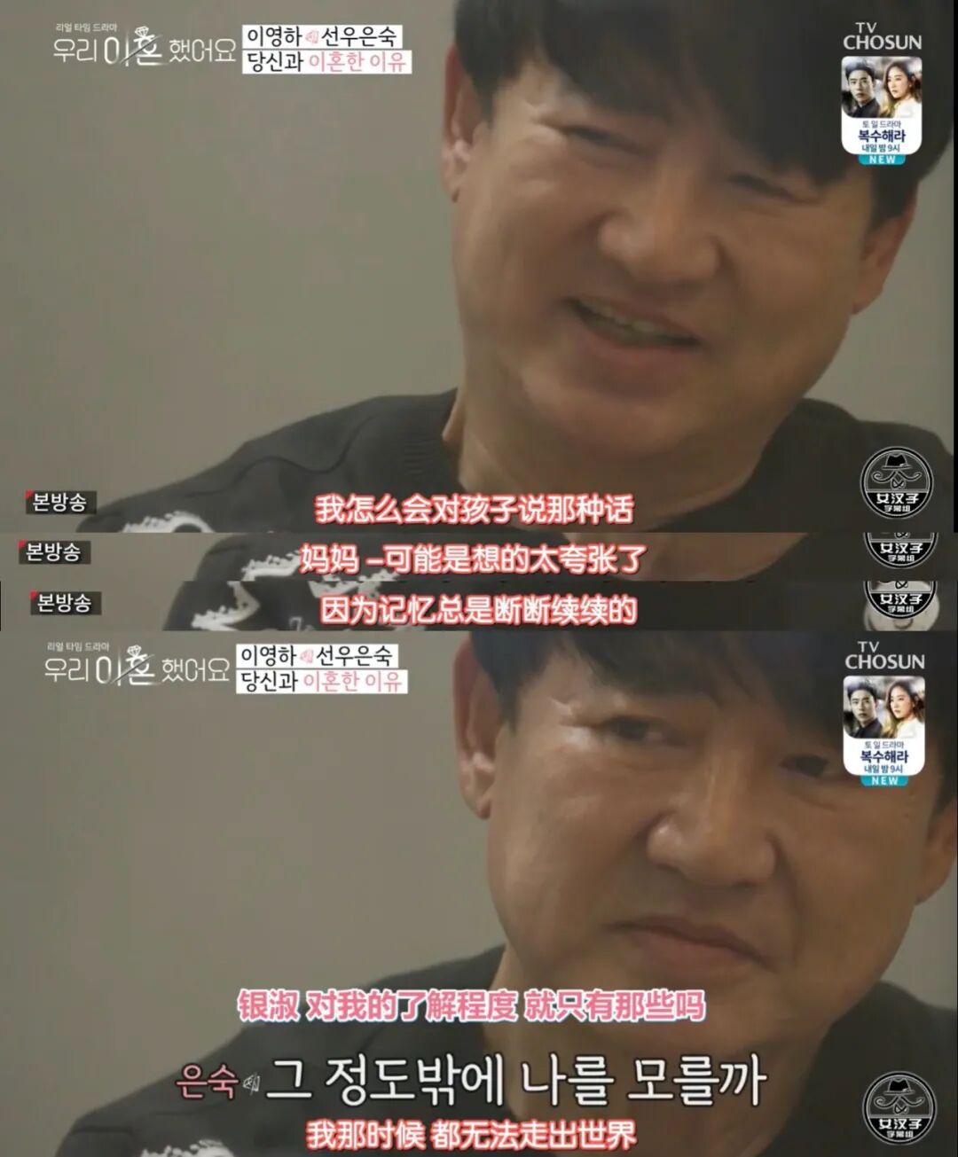在大部分人的传统观念中,离婚就是件不好的事,不易宣扬;而在演艺圈,夫妻很多时候还是利益共同体,宁可各玩各的也不拆,闹到离婚的地步就是撕破脸“宣告仇人”了,如今参加同一个节目,还住在一起?热搜都寂寞不了!▼▼▼节目播出后,也不负所望,连续两周收视第一,十个实时热搜里有八个是关于它的,在国内也是实火▼▼▼但观察室里的主MC请的是之前主持《我们结婚了》《明星夫妻秀》等恋综的申东烨、金媛熙,可能隐隐预示了节目的走向▼▼▼第一期播出后,不仅没有老死不相往来的撕逼和低头不见抬头见的尴尬,反而有隐隐发展成《我们复合了》的趋势。两对夫妇坐在一起平心静气谈论过去、现在、未来,比起仇人,更像许久未见的老朋友▼▼▼很多号都追在了第一期,截图看上去都像复制黏贴的,标题则大多长这样▼▼▼经验告诉我们,观察类综艺得看三期#后台不要来催offer了,在等待一个时机来写#三期看完,你就明白,之前磕到的都是玻璃渣,复合是绝对不可能的。先说说父母组代表——知名度很高的“模范夫妻”:李英河和鲜于恩淑。李英河,1980年代元祖言情片的御用男主,最佳男主角拿到手软,放现在就是孔刘、李栋旭▼▼▼靠清纯扮相一炮而红的鲜于恩淑有很多经典角色,年纪大了之后,成了妈妈专业户,孩子有rain、宋慧乔、韩佳人▼▼▼1981年,两人结婚时震惊了整个娱乐圈,婚后也合体拍了很多广告▼▼▼但,2007年,结婚26年的两人宣布离婚,舆论也炸了。