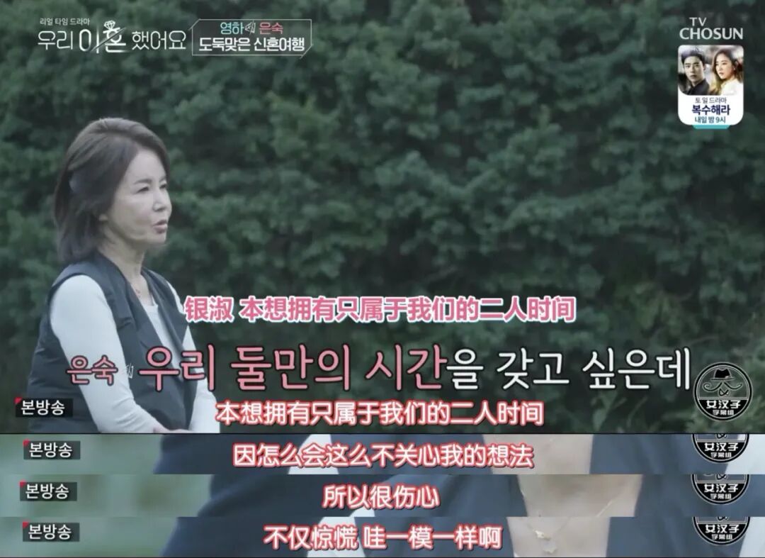 肉眼可见这对夫妻不在同一个频率,甚至在外人面前装都不想装一下,再给30个30天都不可能复婚。李英河明白自己的问题,但他就是不愿意改,习惯性地选择无视、放弃、不耐烦▼▼▼甚至,还要反过来劝恩淑:期望越高,失望越大,不要生活在幻想中,现实是不一样的。矛盾发生时,一个觉得对方太作,一个觉得你真没心;一个选择磨合,一个选择逃避——这怎么走得到一起去▼▼▼另一对讨论度很高的90后,崔烤肉和刘紫苏#看名字我都饿了#,结婚五年,离婚七个月。做了youtuber15年的崔烤肉被称作“个人放送界的申东烨”,游戏、唱歌、魔术样样精通,还做得一手好菜▼▼▼在崔烤肉公演时对他一见钟情,24岁因为怀孕结婚,28岁离婚▼▼▼两人不是什么大明星,但因为恩爱和养育孩子松叶的视频,也有70万粉丝。离婚时,很多人惋惜:世上最甜蜜为什么会离婚?▼▼▼确实,两人看起来挺甜的,比起离婚夫妻,更像小情侣。刚见面就开始拌嘴,互相争论离婚后对方到底瘦没瘦,烤肉还cue紫苏摸自己的胸▼▼▼紫苏洗漱时,烤肉会自然地跟过去,帮她抓住后面的头发▼▼▼