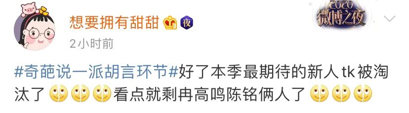 温故第六季《奇葩说》蔡康永驳斥罗振宇996的gui话后,开写2021年第一推。这一季有梗又能辩的bbking种子选手TK竟然被淘汰了!?▼▼▼18岁的TK,相比节目组给的一长串title▼▼▼![]()