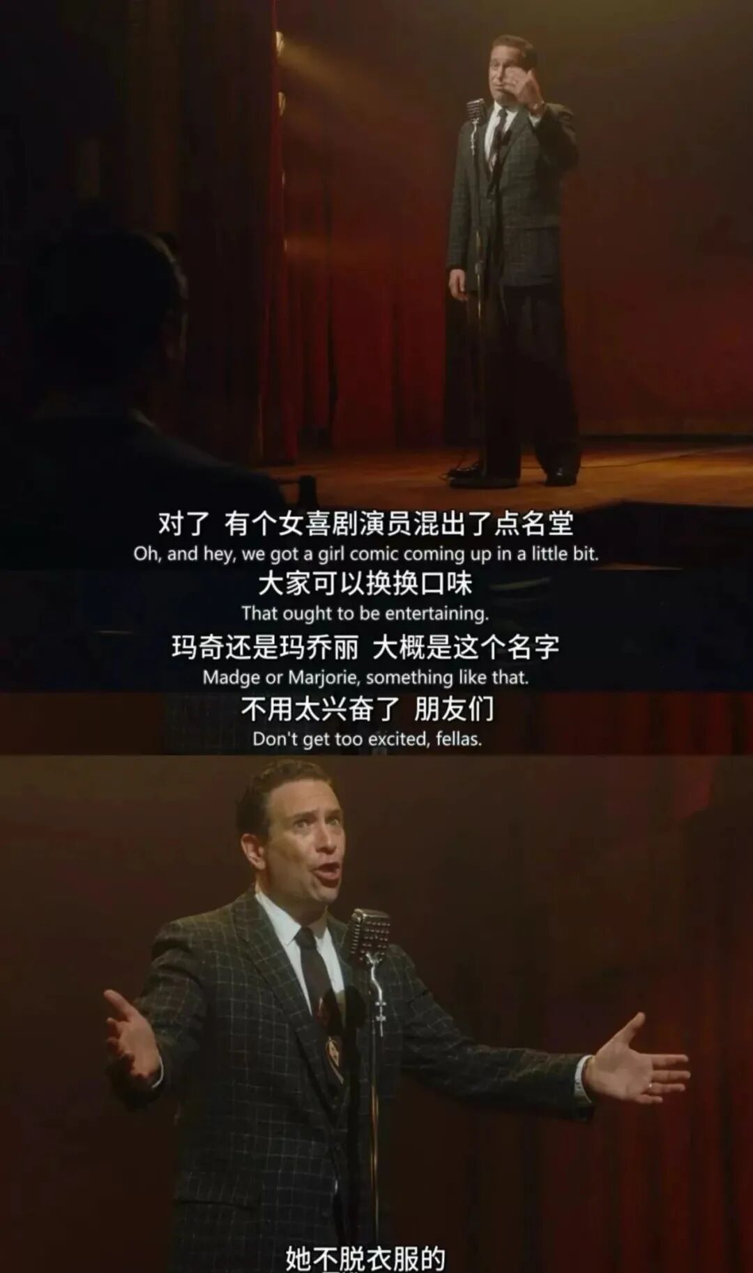 简直是《麦瑟尔夫人》里取笑女主的男演员原型啊▼▼▼![]()