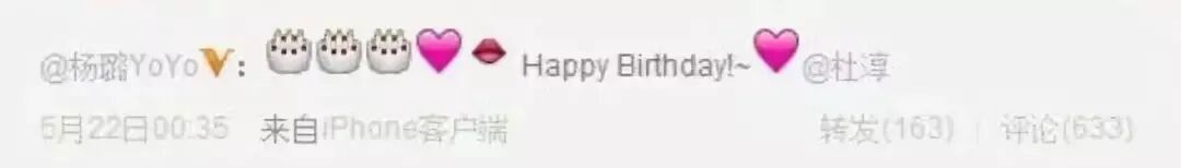 5月22日杜淳生日那天,杨璐又艾特杜淳,发爱心和红唇祝他生日快乐▼▼▼