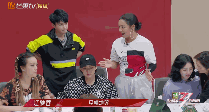 别的组员在努力缓和气氛,她在一旁闹脾气,哭得不能自已。
