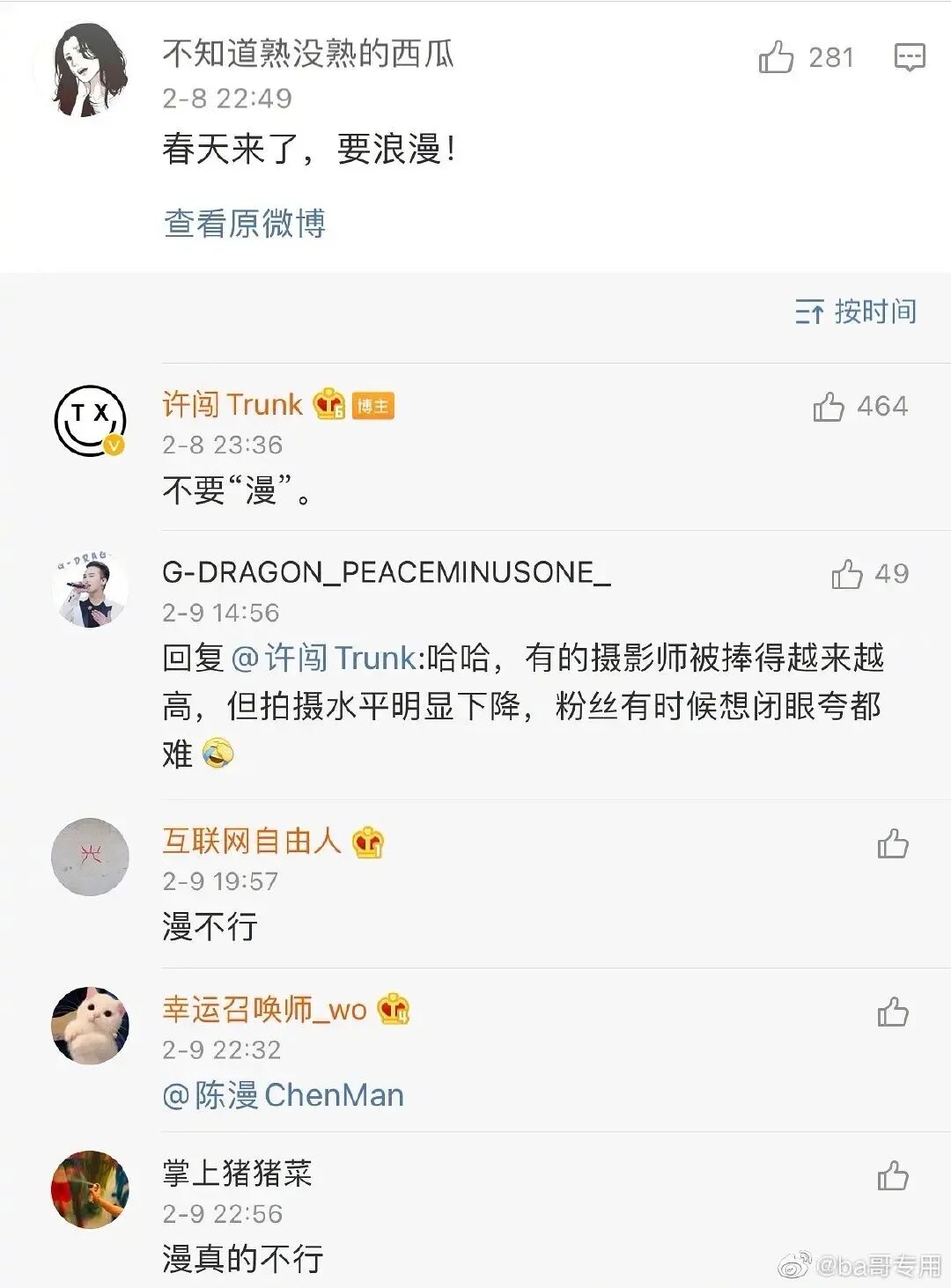 不仅被网友群嘲,圈内的其他摄影师,带着点不屑和眼红,也纷纷出来“内涵”▼▼▼