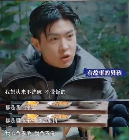 因为男德典范马老师在家里家务做惯了:我妈从来不洗碗,不做饭的,都是男孩子干这些事情,我妈啥也不做。