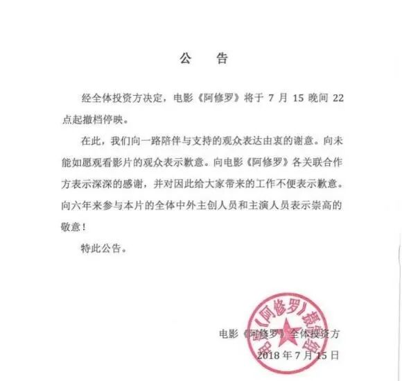 《阿修罗》在上映第三天,扛不住票房和评分的双压,主动撤档了▼▼▼