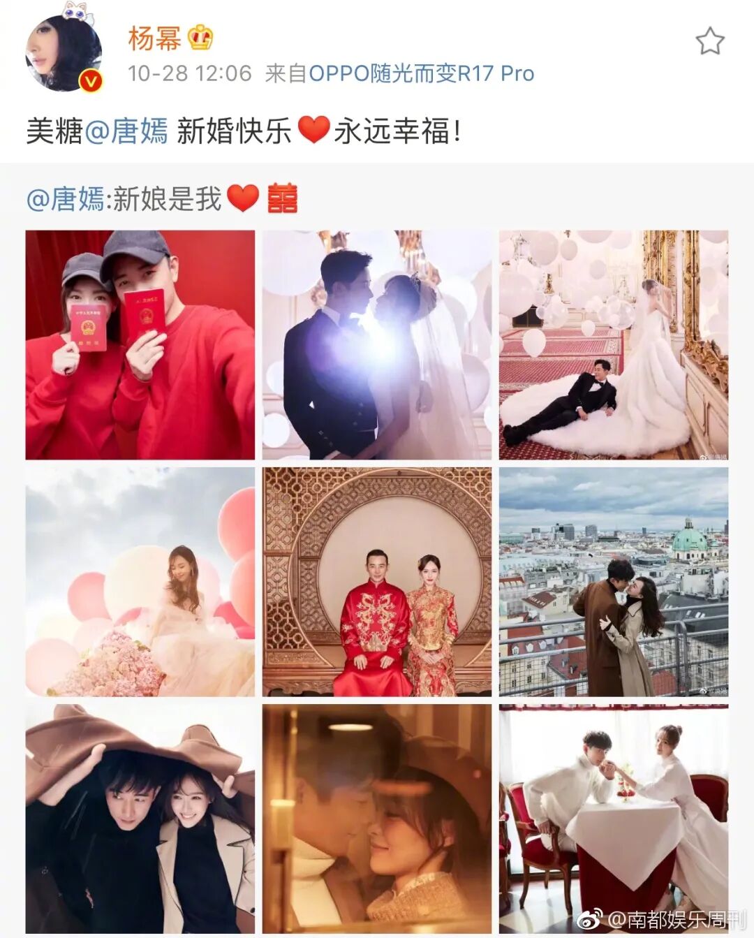 18年唐嫣和罗晋在微博宣布结婚喜讯,尽管杨幂也卡点12点06分转发祝福▼▼▼