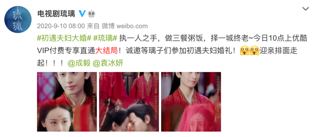 优酷的《琉璃》一早宣布10点点播大结局▼▼▼