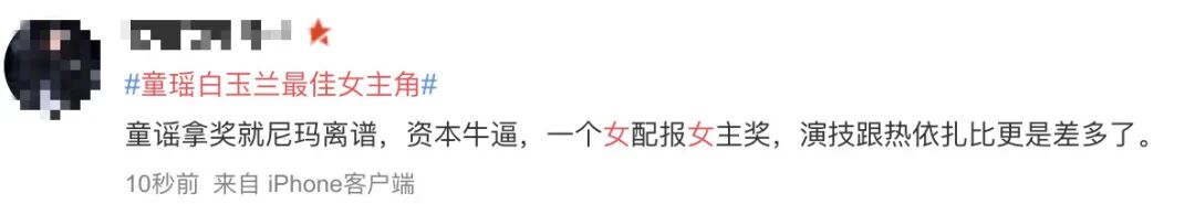 很多观众觉得,她的演技还不足以拿白玉兰,特别是在竞争对手有“水花”热依扎的情况下▼▼▼